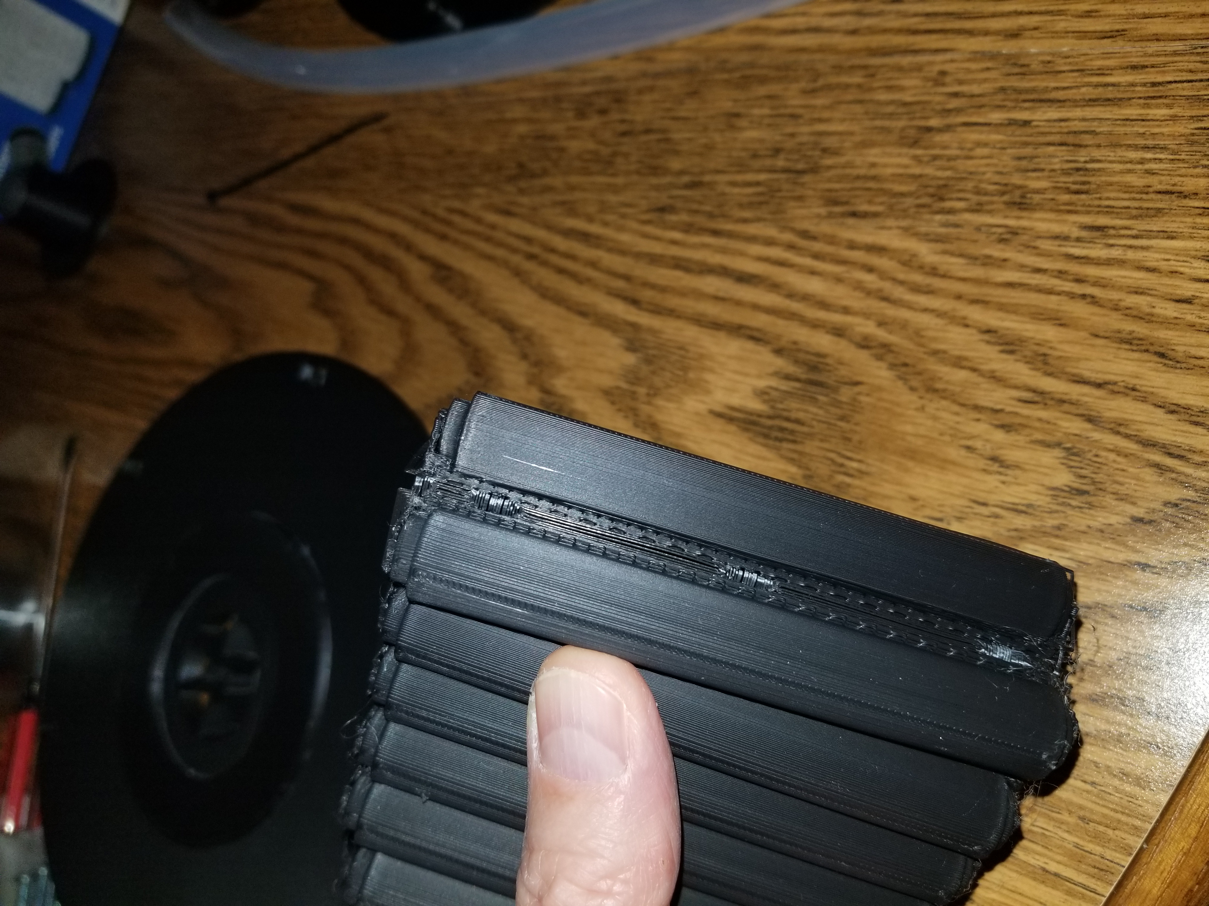1 - 20250110_221527.jpg End view of the vertical supports printed showing the plastic support material that will need to be removed. | ![]() |