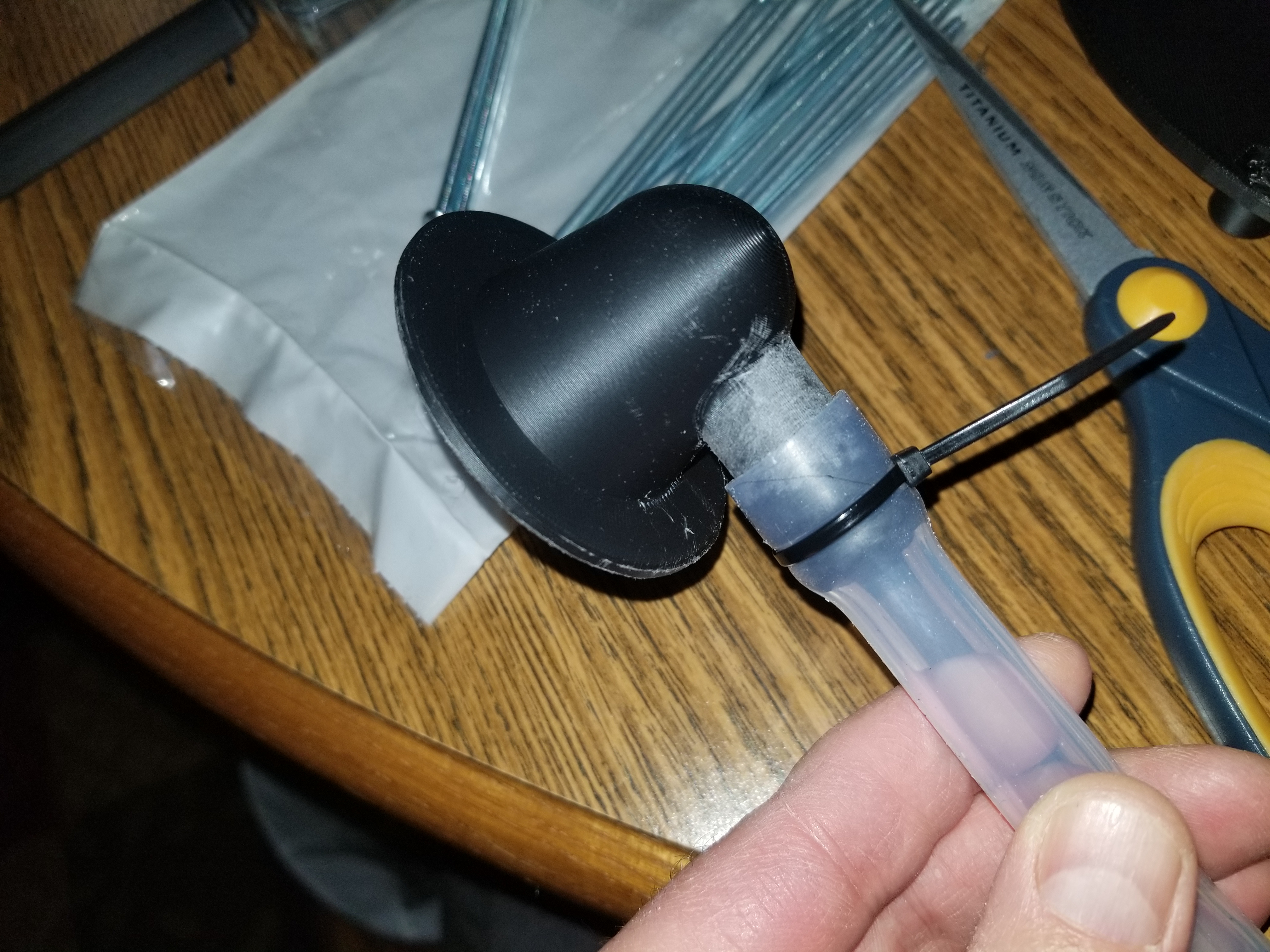 13 - 20250110_222938.jpg After cramming the hose onto the hose adapter, (This is not easy) as shown, place a 2mm cable tie over the slot in the hose adapter made for that purpose and tighten. This should prevent the tube from falling off and leakage. (It may not be really needed, but I designed it that way) | ![]() |