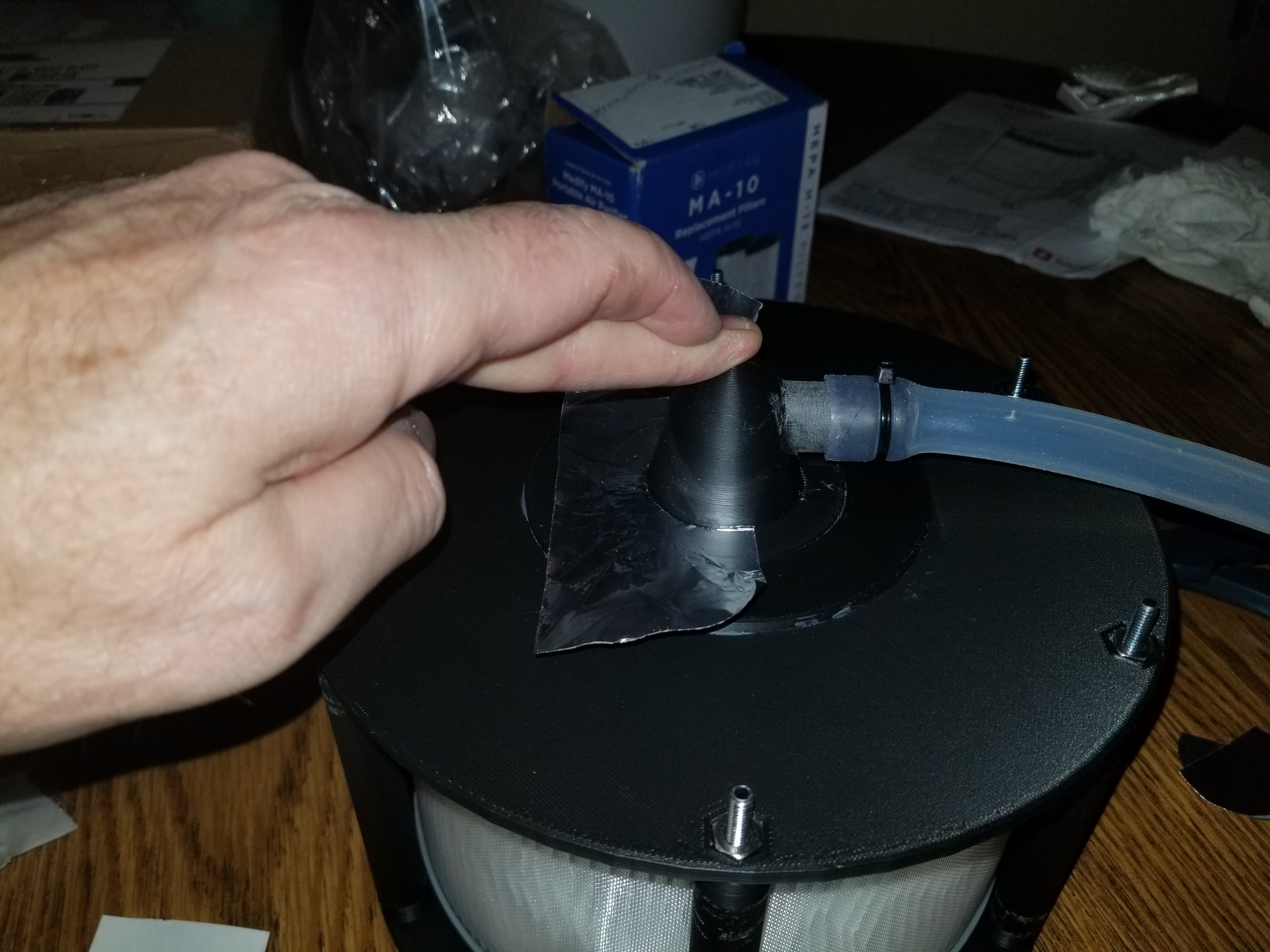 42 - 20250110_232516.jpg I placed the hose adapter onto the filterbox into the hole of the peice that was previously glued to the top. | ![]() |